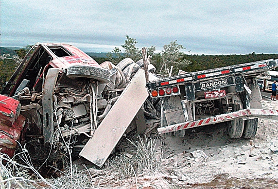 Quatro pessoas morreram na após um acidente que envolveu três veículos na altura do Km 561, na BR-116, próximo a Brejões, no sudoeste baiano. De acordo com a Polícia Rodoviária Federal (PRF), dois caminhões e um carro de passeio passavam pela rodovia quando um dos veículos perdeu o controle e colidiu com os outros dois. Os condutores dos caminhões, Rosevaldo Ramos Vieira e Resinaldo Martins Porro, e duas pessoas que estavam como carona dos veículos, não identificadas, morreram no local. O motorista do carro de passeio, Rinaldo Roberto Cavalcante, ficou com ferimentos leves e foi encaminhado para o hospital de Milagres. Segundo a PRF, o estado de saúde dele é estável. Do Bahia Notícias, com foto do site do Binho.