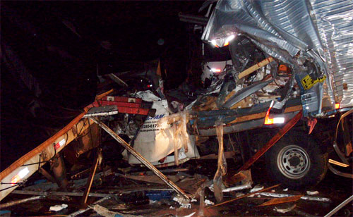 Relatos indicam que chovia forte no momento da batida. O motorista da carreta fugiu do local. Minutos depois, um ônibus quase se envolveu no mesmo acidente, chegando bater levemente o pára-choque dianteiro nos escombros da carroceria da carreta.