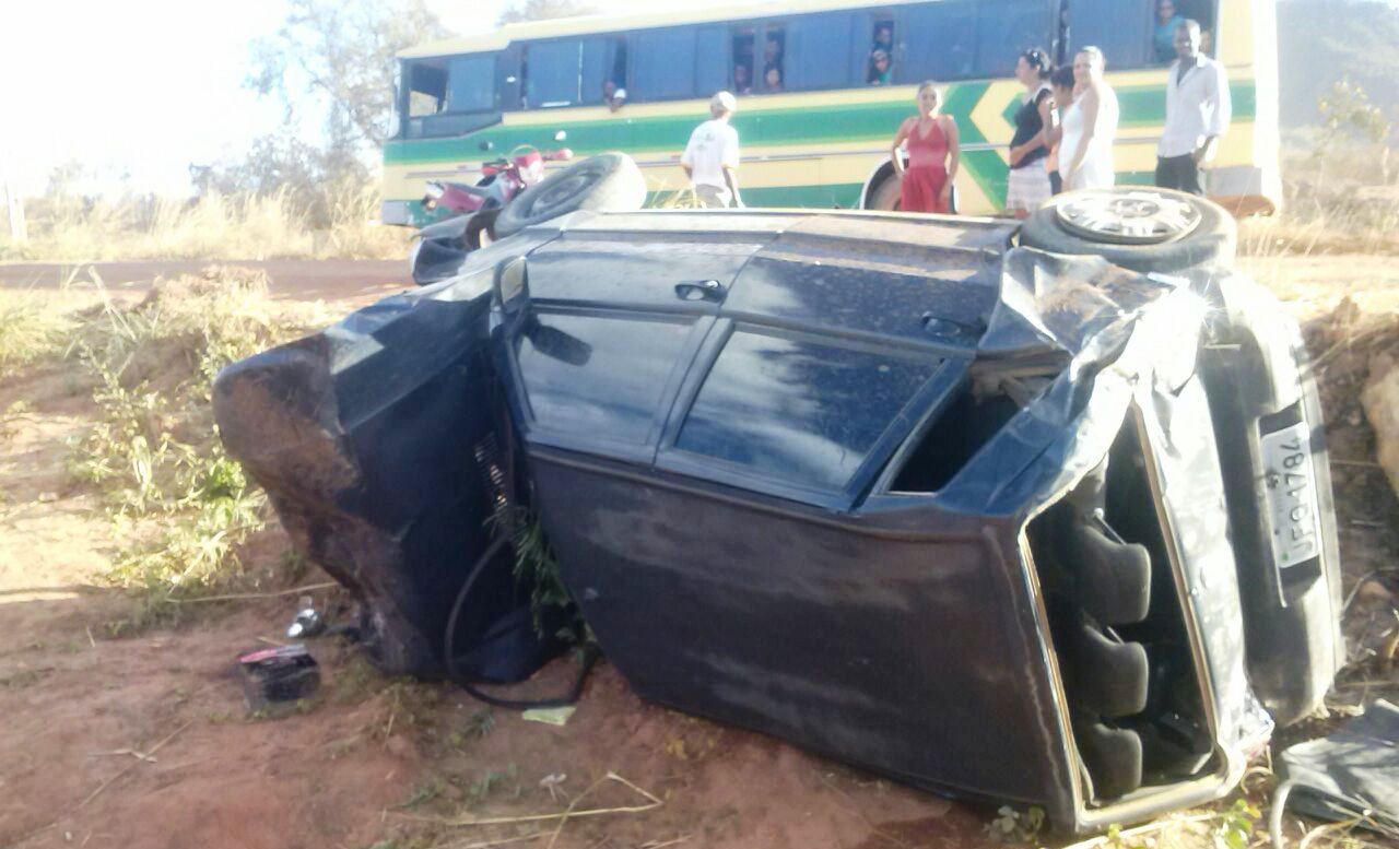 Pois o motorista desse valente Fiat Uno acelerou fundo, ontem à tarde, para ultrapassar uma carreta na BR 135, no trecho Riachão – Barreiras, próximo à estrada do Cantinho. Acabou capotando o veículo fora da pista. O motorista, um santa-ritense, e o carona ficaram feridos na manobra infeliz e foram socorridos pela SAMU para o Hospital do Oeste.