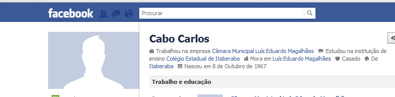 O vereador Cabo Carlos, exercendo a presidência da Câmara de Vereadores de Luís Eduardo Magalhães, aderiu ao Facebook. E já tem 186 amigos. Espera-se que até as eleições de outubro, ele tenha mais amigos e uma foto no seu perfil.