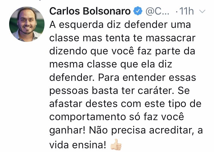 “Roraima, Bolsonaro fez 70% dos votos, mas quem preside o partido dança mais a música do Romero Jucá que dá direita, e no Amapá, Carlos pode tirar uma cadeira da esquerda, de Randolfe Rodrigues ou do isentao Alcolumbre, candidatos a reeleição ano que vem. E, assim, visto o Senado sob a perspectiva de 81 nomes termos ao final a maioria absoluta que tanto desejamos”, ainda teria acrescentado essa fonte.