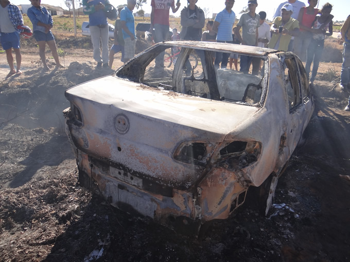 Só o exame de necropsia vai revelar se o homem foi queimada vivo, ou assassinado antes de ter o carro incendiado.