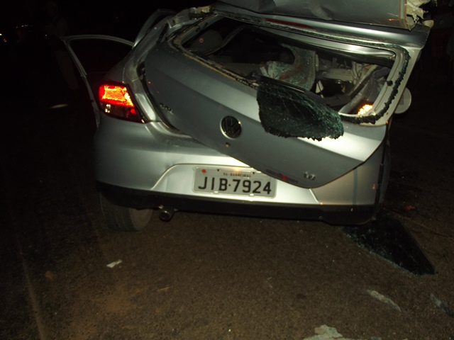 Uma patrulha da Cipe Cerrado colidiu com um Fiat Pálio, na entrada da noite, no acesso da BR 242 ao Jardim das Oliveiras, em Luís Eduardo Magalhães. O Pálio, dirigido pelo auxiliar de eletricista José Edevaldo da Silva, tentava atravessar a pista quando foi abalroado pelo carro da PM, tombando sobre o canteiro central depois de sofrer danos de monta. O motorista, nem os militares, sofreram ferimentos.