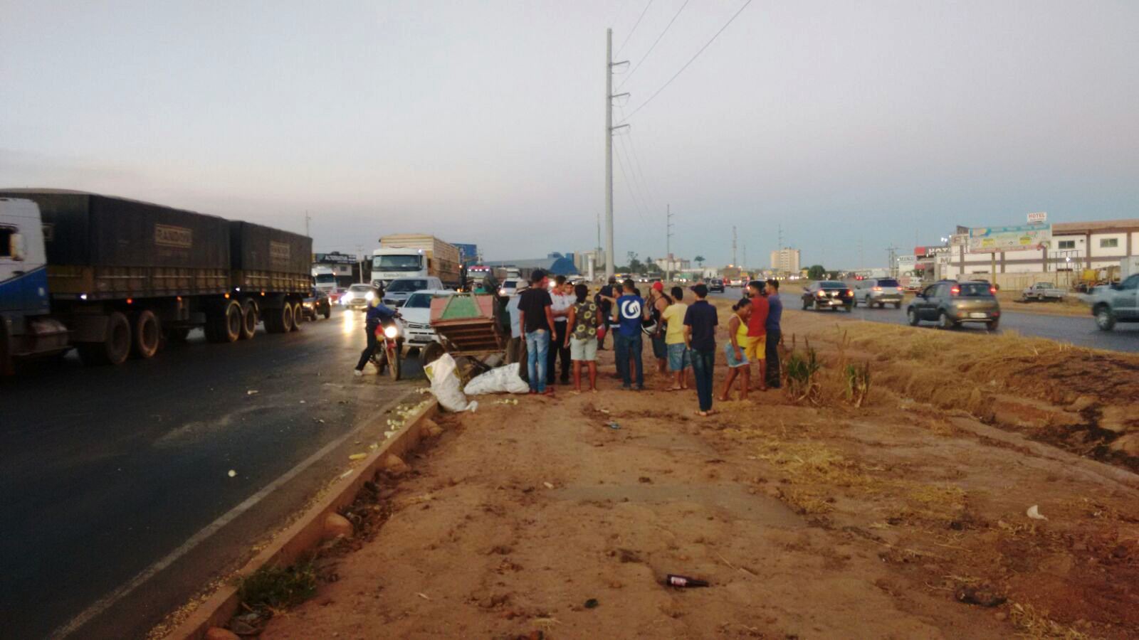 Uma moto pilotada por uma jovem colidiu, com um carro Astra, em torno de 12h20m, no acesso à pista principal próximo ao Posto Columbia II. O carro também era pilotado por uma jovem que, depois da colisão, bateu no meio fio e fez manobra involuntária, girando sobre a pista, parando em sentido contrário.