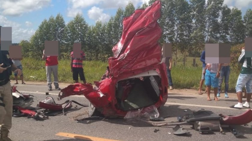 Uma batida entre um carro de passeio e uma carreta deixou duas pessoas mortas e três feridas, na manhã desta sexta-feira (20), na BR-242, trecho da cidade de Wanderley, no oeste da Bahia.