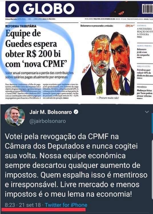O ministro da Economia, Paulo Guedes, afirmou, em entrevista ao jornal “Valor Econômico” , que a ” nova CPMF “, batizada de Imposto sobre Transações Financeiras, poderá arrecadar até R$ 150 bilhões por ano. Na entrevista, Guedes defendeu a criação deste imposto como alternativa para reduzir outros tributos .