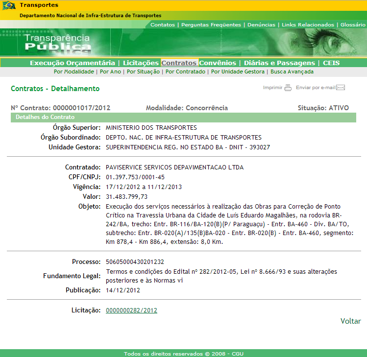 Agora dá para entender porque em locais conflitados no trânsito de rodovias federais, como Barreiras e Luís Eduardo Magalhães, as obras não passam de pinturas de faixas e construção de redutores de velocidade. Segundo notícia do portal Contas Abertas, o DNIT está paralisado, a ponto de ter investido R$1 bilhão a menos, no primeiro quadrimestre de 2012, comparando com o mesmo período do ano passado.