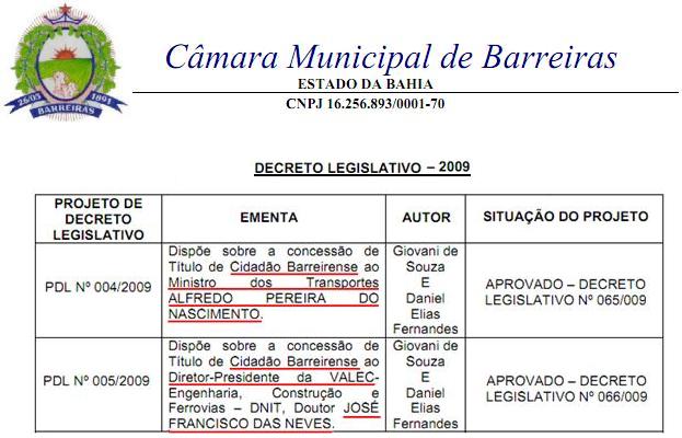 O grande projeto legislativo da Câmara de Barreiras em 2009. A ordem partiu, é lógico, dela, “il capo dei tutti il capi”, Jusmari Oliveira.