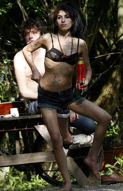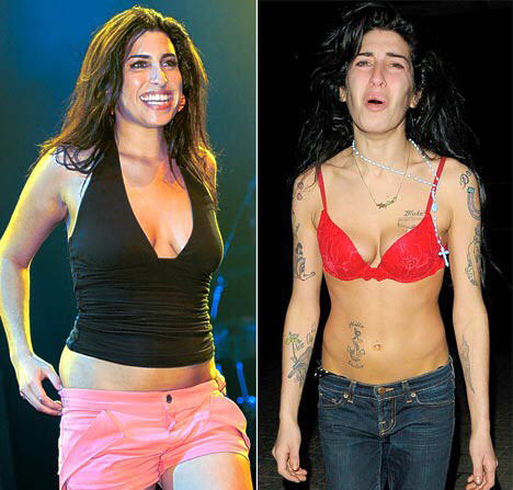 Talento, beleza e dinheiro, muito dinheiro, não foram suficientes para interromper o rápido caminho para o inferno das drogas. Que os seus milhões de seguidores tomem como exemplo a destruição em vida e a morte precoce de Amy. Na primeira foto, como era no início da carreira e, nas subsequentes, a transformação rápida.