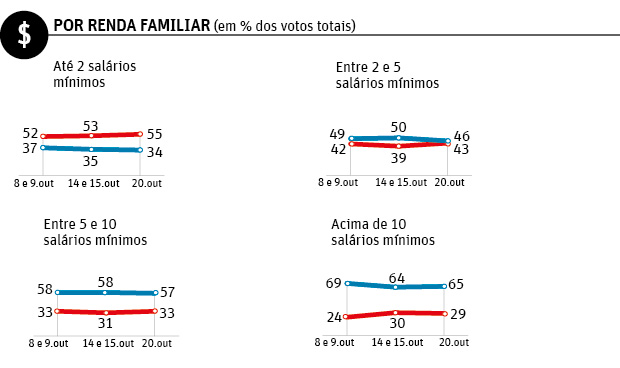 — Essa campanha vai passar para a História como a mais sórdida. A calúnia e a infâmia foram feitas não só em relação a mim, em relação a Eduardo Campos, a Marina. Isso é um péssimo exemplo. A revista publica que um dos delatores disse que a senhora e Lula tinha conhecimento da corrupção na Petrobras. A senhora sabia da corrupção na Petrobras?