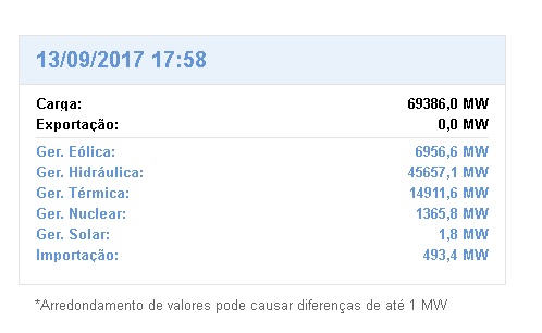 Nos últimos meses de 2017, por causa do baixo nível dos reservatórios das hidrelétricas, houve cobrança extra nas contas de luz via bandeira tarifária. Isso ocorre para arrecadar recursos necessários para cobrir custos extras com a produção de energia mais cara, gerada por termelétricas.