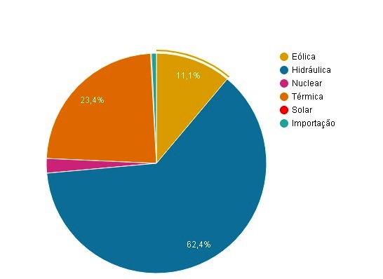 Dados de 2015 apontavam que cerca de 6% da energia gerada em território nacional vinha de fontes eólicas ou solares, enquanto as fontes hidrelétricas foram responsáveis por 64% do total produzido.