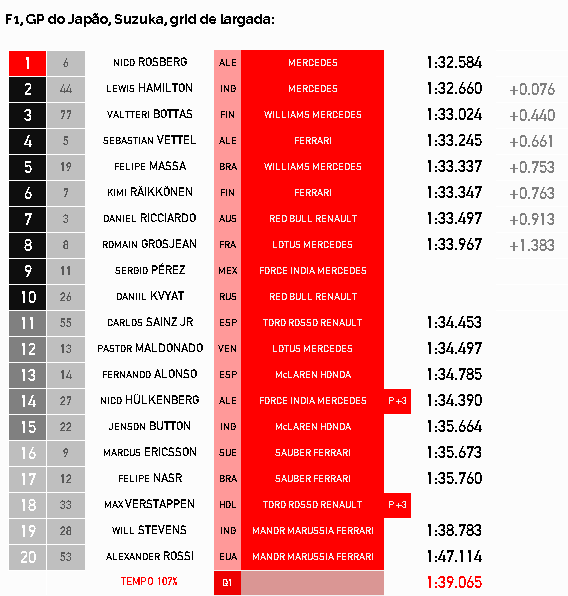 Veja o grid de largada: