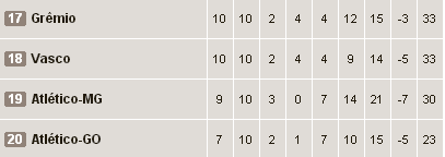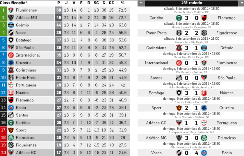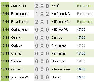RESULTADOS DA RODADA E CLASSIFICAÇÃO DO BRASILEIRÃO