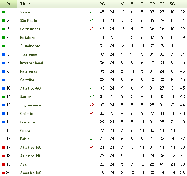 Quem quer ganhar um campeonato, tem que ganhar dos melhores. Por isso, hoje o Internacional deve ter colocado fora sua melhor chance de se firmar no Brasileirão. O time se mostrou medíocre demais, com uma determinação desorganizada e falta daquele decantado talento decisivo. Quem quer ganhar um campeonato, tem que ganhá-lo em casa e depois tentar, no terreno alheio, manter a sua posição. Teoricamente um time que ganha todas em casa e empata todas fora de casa fecha o ano com 76 pontos.