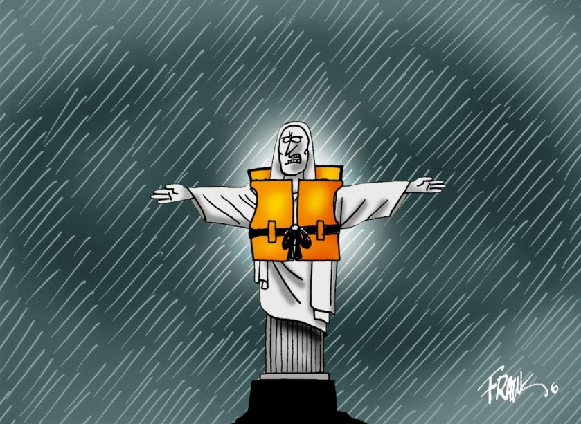 A charge do Frank foi feita em abril de 2010. Mas continua atualíssima. Em vez do salva-vidas, poderia ser um colete à prova de balas. Veja outras em Xarjincasa.