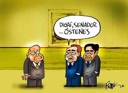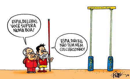 O desembargador Tourinho Neto, do Tribunal Regional Federal da Primeira Região (TRF1), do Distrito Federal, concedeu nesta sexta-feira o pedido de habeas corpus ao bicheiro Carlos Augusto Ramos, o Carlinhos Cachoeira. No entanto, o contraventor não deixará a Penitenciária da Papuda por enquanto. O advogado Augusto de Arruda Botelho, que trabalha no escritório contratado pela defesa de Cachoeira, disse à reportagem do iG que uma juíza da 5ª Vara da Justiça Estadual de Goiás indeferiu nesta sexta pedido da defesa de revogação da prisão do contraventor referente à Operação Saint-Michel. Charge de Frank.