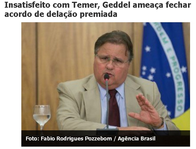 Geddel Quadros de Vieira Lima não deveria estar brincando com coisa séria. Uma eventual ameaça de delação, num presídio que tem 8.000 bandidos abrigados, pode se transformar, num piscar de olhos, em execução premiada.