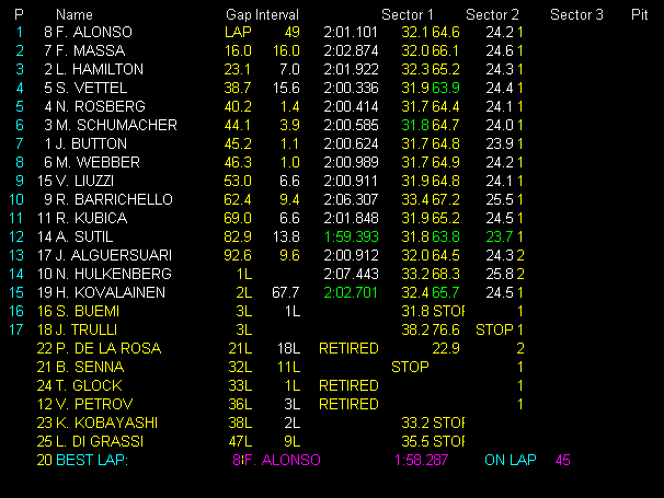 Já o tetracampeão Sebastian Vettel voltou a decepcionar. O alemão foi eliminado logo no Q2 e largará em décimo, atrás do atual vice-campeão, o espanhol Fernando Alonso, da Ferrari.