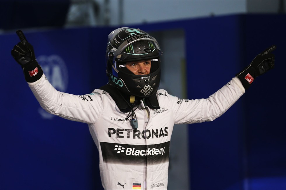 O alemão Nico Rosberg, da Mercedes, largará da pole position no Grande Prêmio do Bahrein deste domingo. Felipe Massa (Williams) sairá em sétimo do grid. Esta foi a quinta pole da carreira de Rosberg, que dividirá a primeira fila com o companheiro de equipe, o britânico Lewis Hamilton, três décimos atrás.
