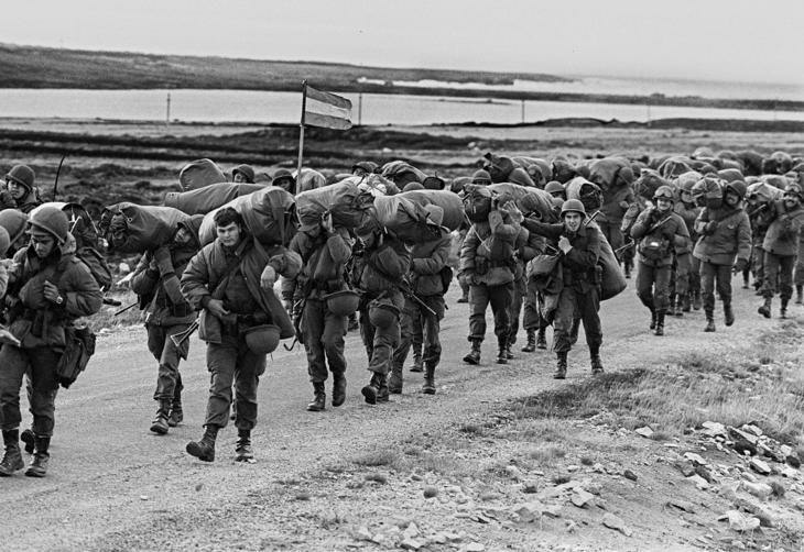 Soldados argentinos chegam às Malvinas para lutar no gélido abril de 1982. Foto de Daniel Garcia, da AFP.