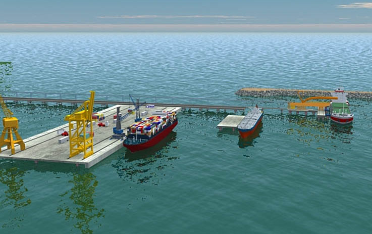 O projeto terá uma ponte de acesso de uso compartilhado entre os dois terminais do empreendimento Porto Sul que ligará a costa aos píeres de carregamento localizados em área abrigada por quebra-mar.