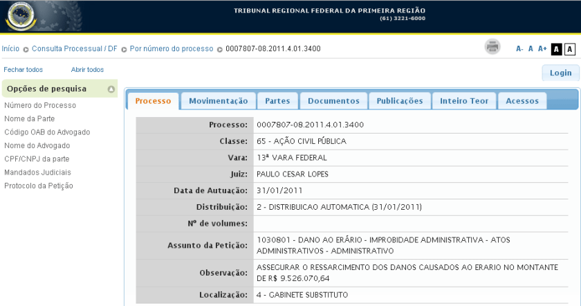 A ação por improbidade administrativa pode resultar, em tese, em perda da função pública, suspensão dos direitos políticos e pagamento de multa.