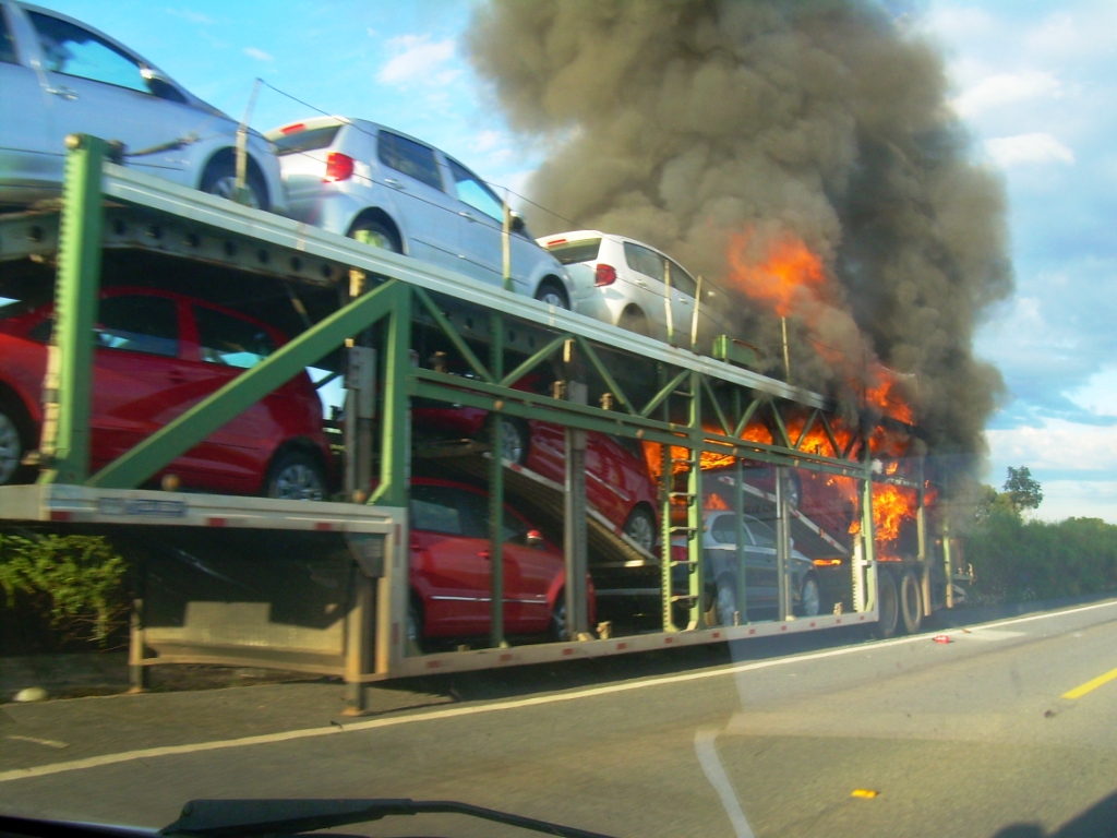 O motorista ainda teve tempo de desengatar o cavalo e salvar parte do seu patrimônio. Todos os automóveis foram consumidos pelo fogo. A foto foi tirada por um leitor, logo no início do incêndio. O corpo de bombeiros de Barreiras atendeu o incidente, que acabou causando um grande congestionamento na rodovia.