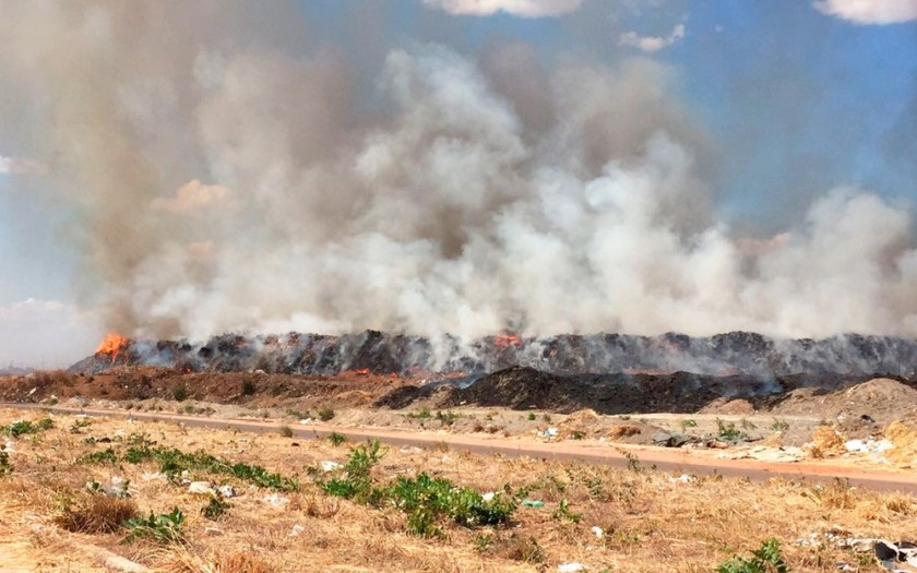 Um incêndio atingiu o lixão de Luís Eduardo Magalhães. A região noroeste da cidade continuou hoje atribulada pela fumaça resultante do grande incêndio que tomou conta, ontem, do lixão por mais de 7 horas. O fogo se iniciou às 13 horas e só foi debelado pelo Corpo de Bombeiros depois das 20 horas.