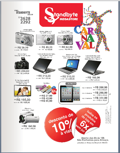 Promoções de carnaval da Standbyte continuam até dia 29. Clique na imagem para ampliar. -12.099405 -45.798260