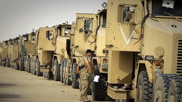 A divisão formada por 100 veículos blindados, transportando 500 soldados, cruzou o deserto do Sul do Iraque entre a madrugada de sábado e a manhã deste domingo (18).