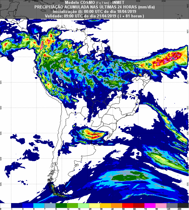 As condições atmosféricas estão favoráveis à formação de Sistemas Convectivos de Mesoescala que avançam sobre a Região Sul do Brasil provocando chuva forte.