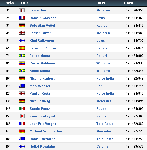 Os carros deram algumas voltas antes da chuva parar e a pista rapidamente começar a melhorar. Apesar de ter feito sua volta após Hamilton, Vettel não conseguiu melhorar o “1:58.179s” do britânico da Mercedes.