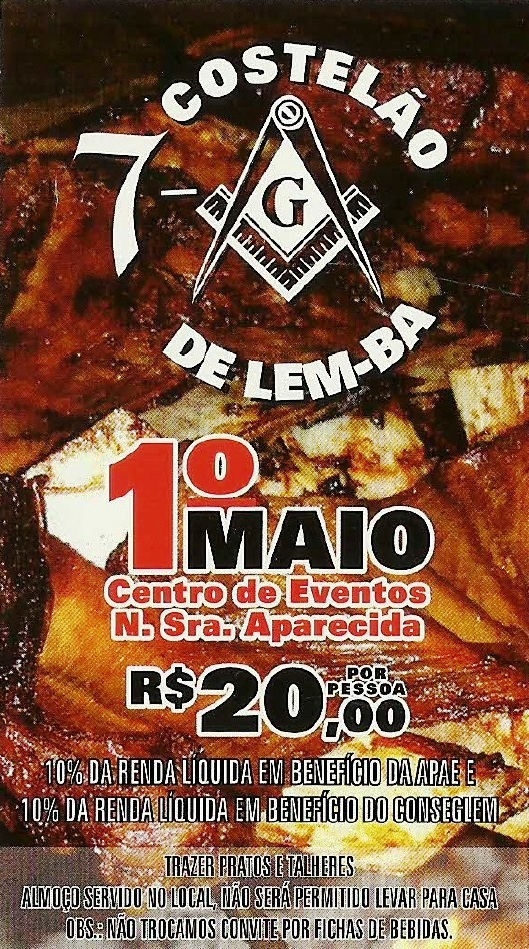 Neste domingo, um grande encontro da comunidade no Centro de Eventos Nossa Senhora Aparecida: é a 7ª edição do Costelão, promovido pelas lojas maçonicas de Luís Eduardo Magalhães. A APAE e o Conselho de Segurança – Conseg LEM estão entre os beneficiários da renda. Clique na imagem para ampliar e ver detalhes.