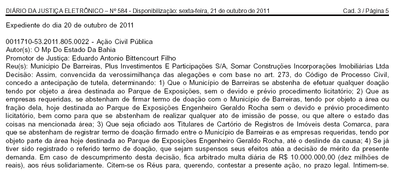 Mesmo não concordando com a situação precária da única unidade prisional do município de Barreiras, o promotor de Justiça Ernesto Cabral de Medeiros e a juíza Marlise Freire Alvarenga adotaram posicionamento contrário à decisão dos investigadores de polícia que querem se eximir da responsabilidade de realizar a custódia dos presos provisórios recolhidos na unidade de Polícia Civil local. Segundo anunciou o Sindicato dos Policiais Civis do Estado da Bahia (Sindpoc), isso ocorreria a partir do próximo dia 3 de janeiro de 2013. Mas, para não permitir a interrupção desse serviço público essencial, a juíza acatou o pedido de liminar feito pelo promotor de Justiça em ação civil pública e determinou que os policiais continuem a exercer a custódia e não suspendam, paralisem e nem limitem essa atividade até que o Estado da Bahia implemente uma política pública de administração penitenciária e execução penal que garanta a continuidade plena do serviço.