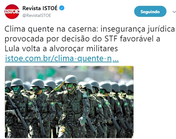 As vivandeiras, as rameiras que costumam acompanhar de perto as tropas, nos acantonamentos militares, estão agitando novamente pelo fechamento do regime. A revista “Quanto É” já anuncia que os militares se preparam para destituir o desmoralizado Michel Temer e tomar o poder depois da prisão de Lula.