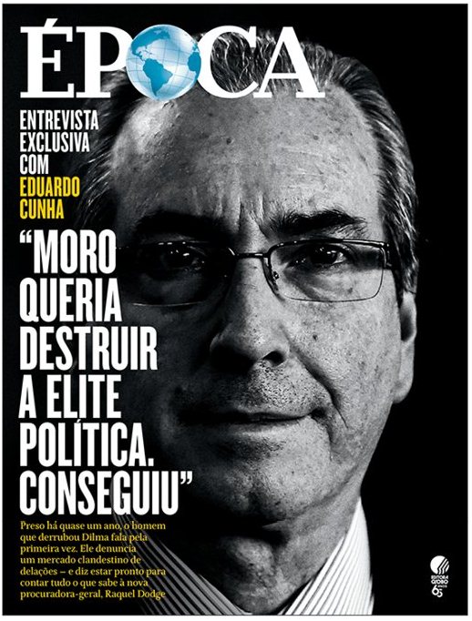 O carrasco do impeachment de Dilma, o chefe armado do quadrilhão de Temer, dá entrevista à revista Época e ameaça acabar o desmonte da República. Ele acusa o juiz Moro, o camisa preta, de montar um mercado clandestino de delações para dominar a elite política do País. E a Globo Overseas, sempre presente nos grandes acontecimentos políticos do País, deu a capa da sua revista ao bandido.