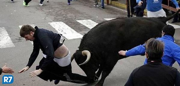 Um turista americano se dá muito mal no “Carnaval de Toros”, na Espanha. Está gravemente ferido no Hospital.