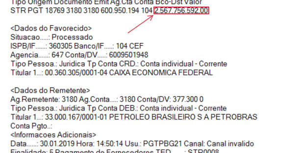 Que pena! O dinheiro, a insignificante quantia de R$2.567.756.592,00, já estava na conta, pronta para ser transferido para os feitores da corrupção brasileira. Deu até para sentir o cheirinho da bufunfa.