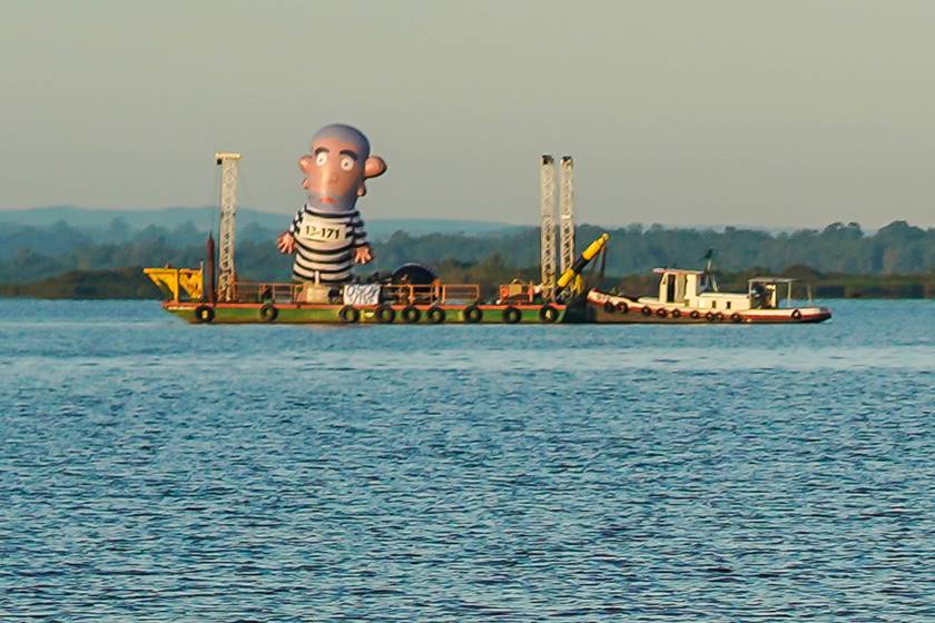 No meio do rio Guaíba, em Porto Alegre, surgiu um boneco gigante de Lula, sobre uma balsa controlada por um rebocador. Os coxinhas de Porto Alegre têm dinheiro e não são bobos. Se eles levantam o pixuleco em terra firme, não dura 5 minutos, antes que um petista passe o canivete nele. O Secretário de Segurança do Rio Grande do Sul mandou retirar o boneco.