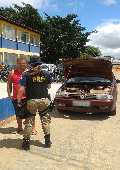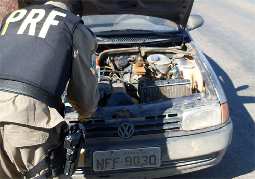 A PRF constatou a primeira irregularidade ao checar a numeração gravada nos vidros do automóvel, não compatível com a descrição contida no CRLV. Ao realizarem consulta no sistema integrado de investigação na internet, os policiais descobriram que o carro também possuía chapa “fria”.