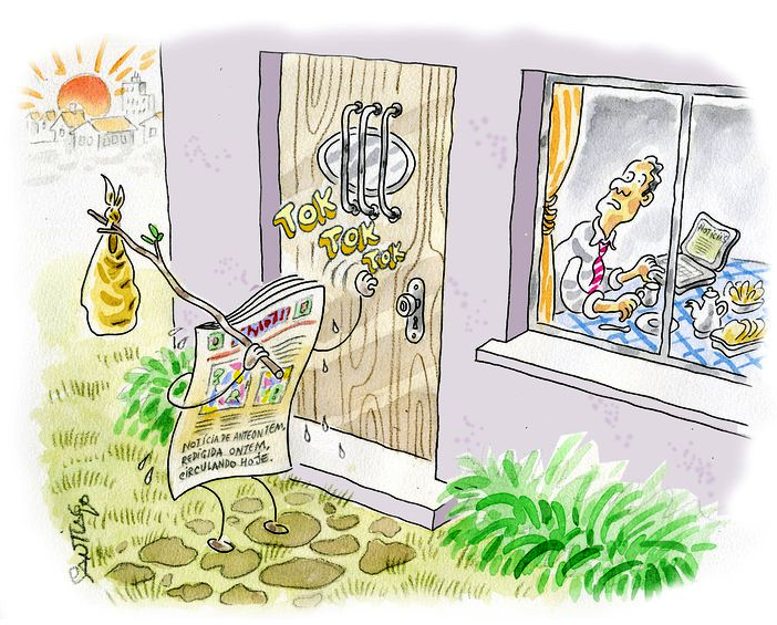 Informação é da pesquisa ‘Global Entertaiment and Media Outlook’. Charge do gaúcho Santiago.