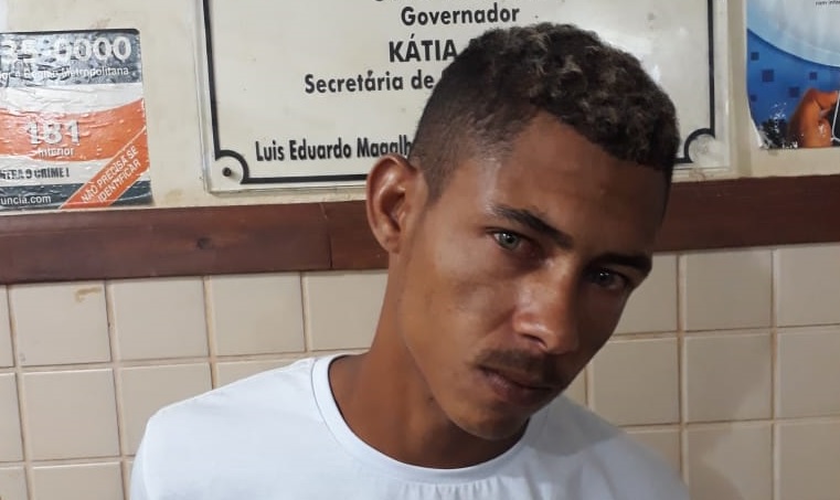 Um homem suspeito de latrocínio foi detido por populares e permaneceu preso, até a Polícia Civil chegar, com as mãos amarradas e uma corda no pescoço.