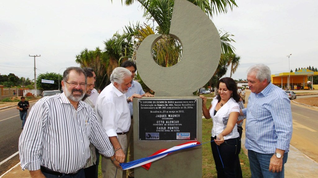 O governador Jaques Wagner inaugurou nesta manhã de sexta-feira a pavimentação da BA-464, no trecho que liga a sede do município ao entroncamento da BR-242, um investimento de R$ 1,6 milhão. Serão beneficiados 75 mil habitantes das cidades de Baianópolis, Cristópolis, Catolândia e Santana.