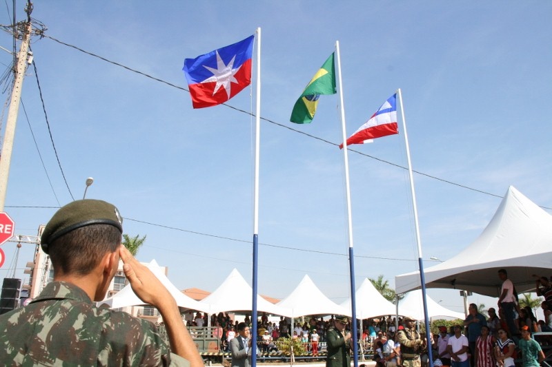 Um bom público acompanhou o desfile cívico de 7 de setembro na manhã desta segunda-feira em Luís Eduardo Magalhães. A abertura ficou por conta do hasteamento do pavilhão nacional seguido da revista às tropas feita pelo vice-prefeito Marcos Alecrim, o subcomandante do 4º Batalhão de Engenharia e Construção (BEC), Tenente Coronel Luiz Vidal e do Tenente Jeferson, representando a CIPE Cerrado.