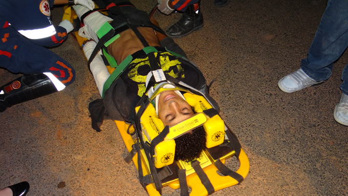 David Gomes Rodrigues, de 25 anos, colidiu sua motocicleta Honda CG Fan contra um Hyundai Santa Fé no cruzamento das ruas Burle Marx com a 13 de maio, em frente a praça do Jardim Paraíso. O mesmo foi socorrido pelo SAMU com uma fratura na perna esquerda e suspeita de fratura no fêmur. O acidente ocorreu por volta de 22h desta quinta-feira, 28. Informação e foto do site de Sigi Vilares.