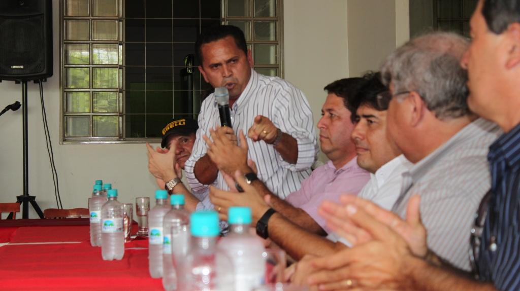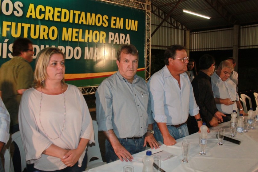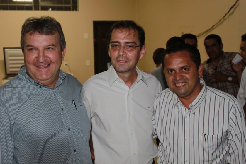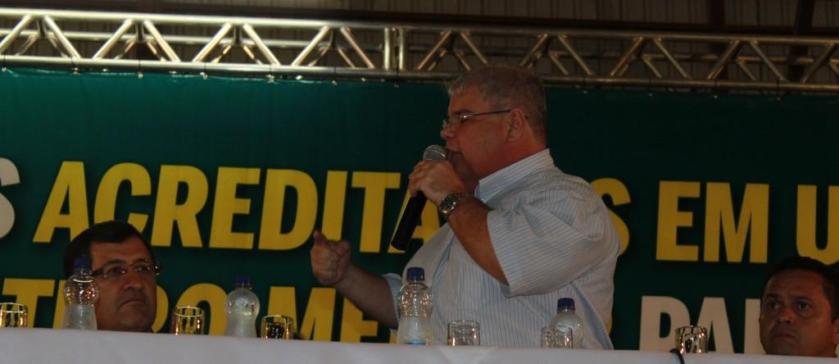 Geddel discursa: ele preferiu um concorrente direto ao Governo de Luís Eduardo, preterindo Fábio Lauck como vice de Humberto Santa Cruz. E já está falando da sua candidatura a Governador em 2014. Abaixo, Vanir Kölln, do PCdoB e presidente do Sindicato Rural, junto com Jair Francisco, um dos articuladores da terceira via.