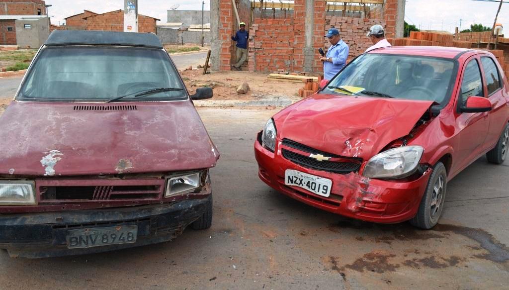 Um carro Hyundai HB 20 sedan, que trafegava no sentido Barreiras colheu um VW Gol, modelo antigo, com quatro pessoas e bagagens que se dirigia a Brasília nas primeiras horas da manhã.