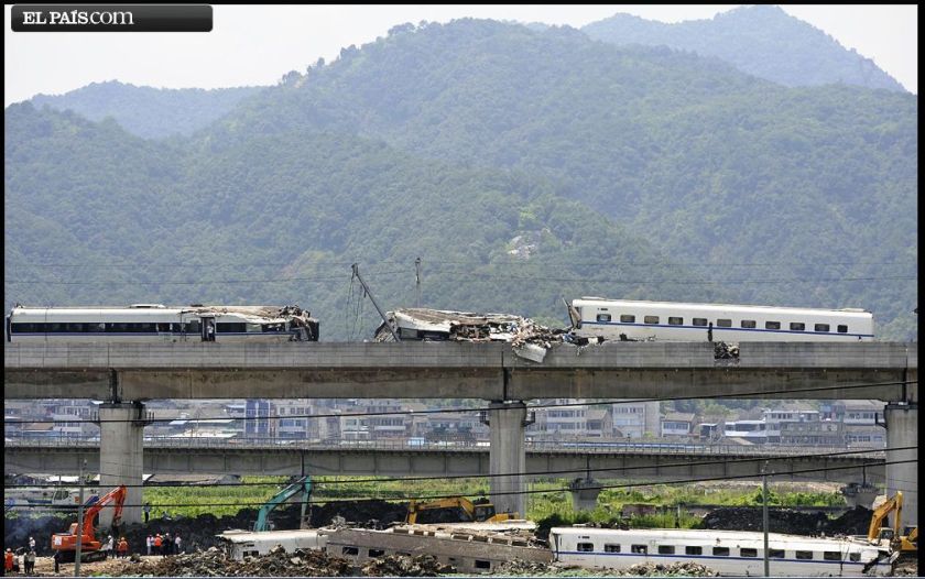 Um viajante citado pela agência de notícias Xinhua informou que, após o impacto, e completamente no escuro, passageiros quebraram janelas e saltaram para fora deles sem saber que estavam a uma altura de 30 metros. A equipe de resgate disse à televisão estatal CCTV que alguns carros tinham sido tão deformados que teve que cortar corpos para resgatar vítimas presas em seus lugares como pilhas de malas e que muitos mal podia falar. Alguns, no entanto, conseguiram por meio de telefones celulares se comunicar com a família e amigos para pedir ajuda. Traduzido de reportagem do El País, de Madri. Foto de agências noticiosas publicadas em El País.