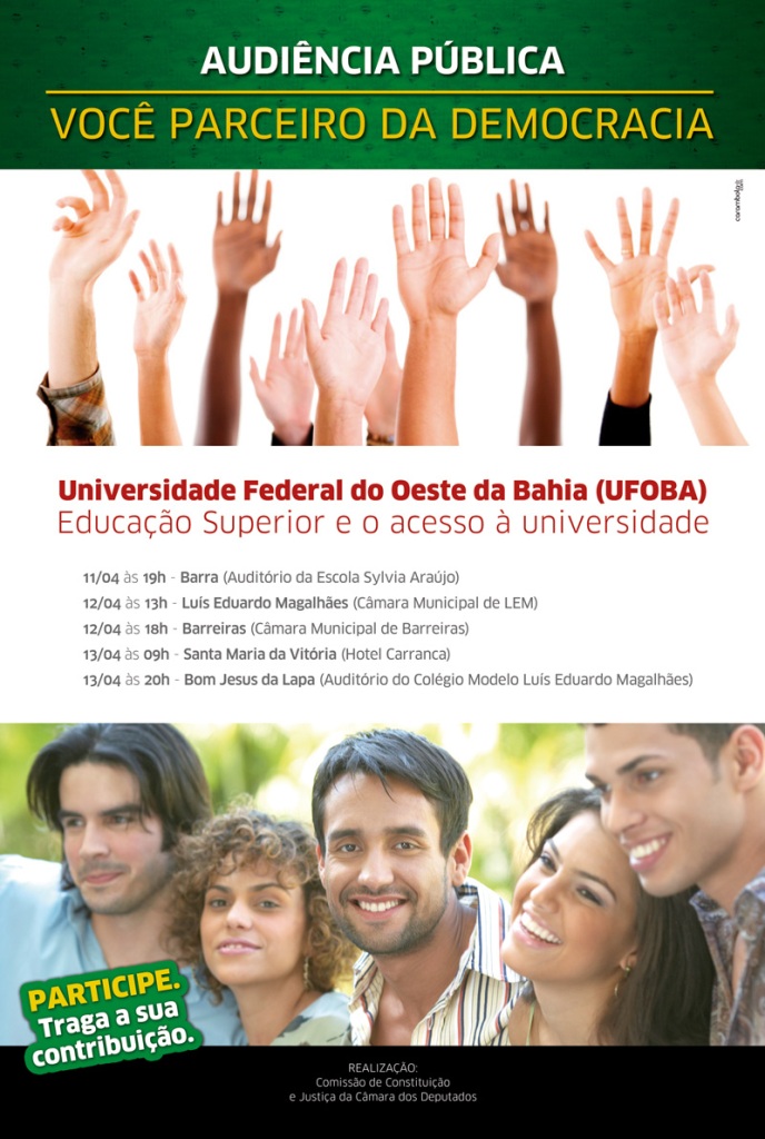 Primeiramente revelo que ficamos lisonjeados em receber o voto de confiança da sociedade, exercido pelo Governo Federal na figura do MEC, no nosso trabalho em Barreiras e que o curso de medicina traz consigo a área de conhecimento em saúde, uma área que oxigena o pulmão científico da instituição e enobrece a missão da Universidade Federal embrionária do Oeste da Bahia. E vai além. Pois é uma área de contato direto entre a sociedade e a Universidade, dando a força ao projeto da Universidade brasileira que legitima nosso papel de apoio ao desenvolvimento do plano social regional.